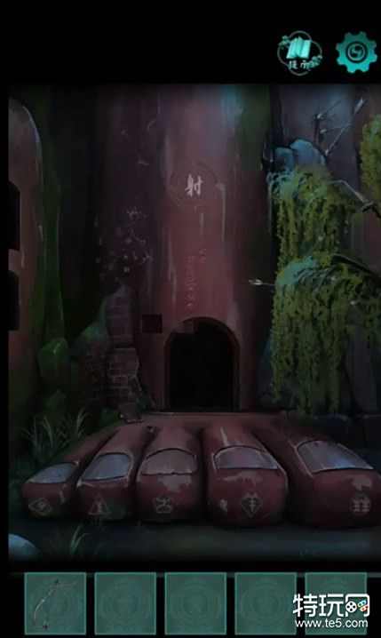 5、香插入坛中,触发机关,根据鼓仙供香坛中的五角星图案移动机关红点,打开机关,按下其中的红色按钮打开通道。