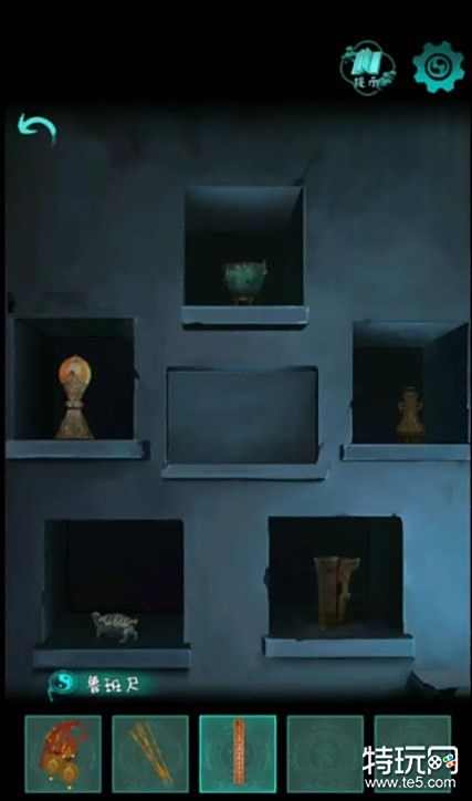 9、拿取【木槌】,按照墙上的顺序敲击(35142341),进入佛头。