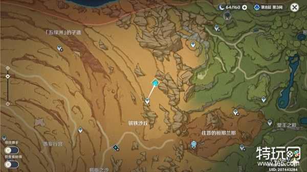 传送镔铁沙丘图中锚点,往地图的东北方向走,前往图中指引位置。