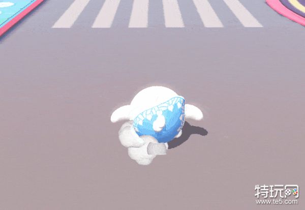 圆圆子动作展示:滚动时身后会有冒着蓝色水蒸气的芝麻馅儿汤圆。