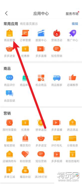 3、如图点击商品管理。