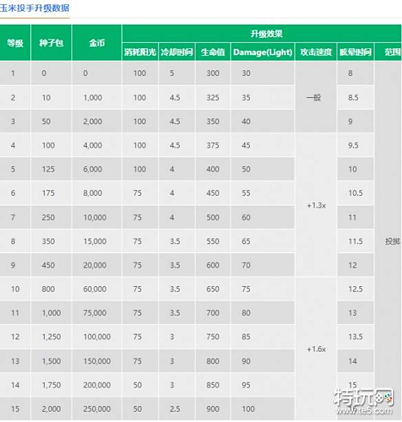 2.攻击时有20%概率发射黄油。两个横排紧挨着的玉米投手可以一同升级为一个玉米大炮。