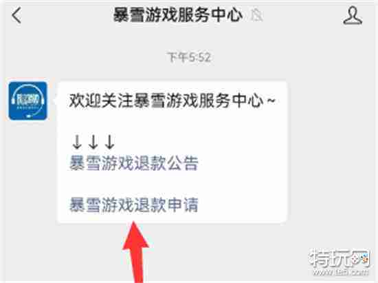 2、在聊天页面官方会自动为你发送退款公告以及退款入口,我们点击【暴雪游戏退款申请】进入退款页面。