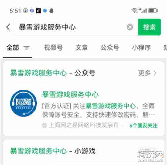 1、想要进行炉石传说的退款,我们需要在微信上搜索【暴雪游戏服务中心】公众号并关注。