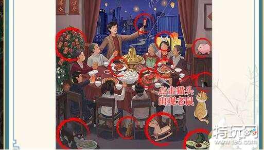 1、找到消失的十二生肖分别是:小狗、蛇果、窜天猴、虎皮凤爪、鸡毛掸子、龙虾、兔耳朵、木马、猪钱罐、老鼠、牛油果、羊肉卷