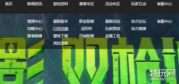 1、首先我们需要先进入CF手游官网,然后在顶部导航找到cdkey入口。
