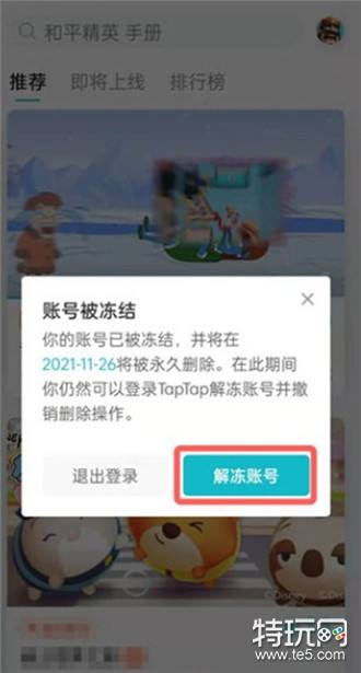 ,taptap解除账号冻结方法