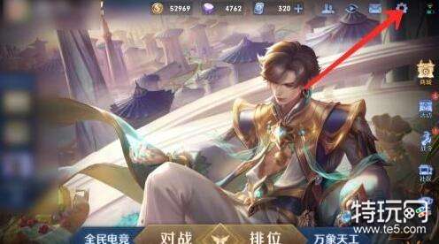1.打开王者荣耀,进入游戏主页面,点击右上角设置。
