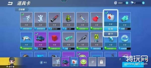 1、道具卡携带:医疗箱(回血,一次救多人,建议锁定)、跳高(逃禁闭室用的,建议放在前面,不然难逃禁闭)、疾跑(速度快,不会因为受攻击打断,最重要的是花费少)、火箭筒(打追捕用的,没事来上一两炮,还有击退效果)、手雷(给对面的迟钝剂,可以造成减速和无法攻击)、皮卡(跑的贼快,逃命时用的,没事还能拉人),以上是新手建议带的卡组,不一定要用,可以自己调整。