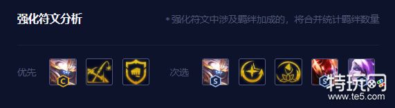强化符文方面万用瞄准镜(增加攻击距离,可不出火炮多一个装备栏拿法强输出装备)、斗士心/徽/冕(能出8斗)、珠光莲花(技能可暴击)、战斗法师(较大增伤,不能与万用瞄准镜一起出)。彩色符文最优斗士冕、黄金门票。