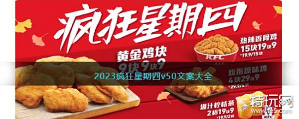 自从肯德基开启了固定营销活动[疯狂星期四]后,网络上涌现出了非常多不同的梗文学。在周四这天我们可以在网络上面看到非常多的长篇大论,无论在讲什么,最后一句都是“v我50”来结尾。每周四小伙伴们都会在各大社交媒体上看到疯狂星期四V我50的类似文案。下面是特玩小编给大家带来的v50文案,2023疯狂星期四v50文案大全,感兴趣的小伙伴们一起来看看吧。