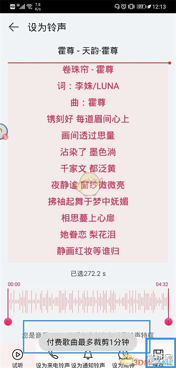 2、进度条拉满后,点击一次保存后,弹出裁剪一分钟提示,长按保存,点击强制保存。