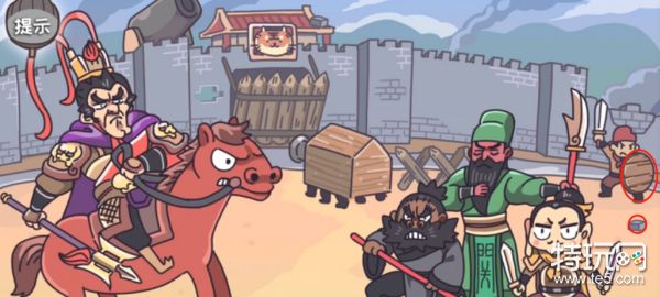 1、首先将右边小兵手中的木盾拖拽至正中间,会得到一个桌子,然后将小兵前面的石头放置桌子上。