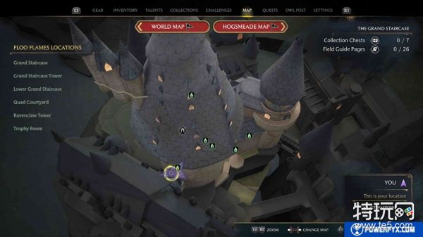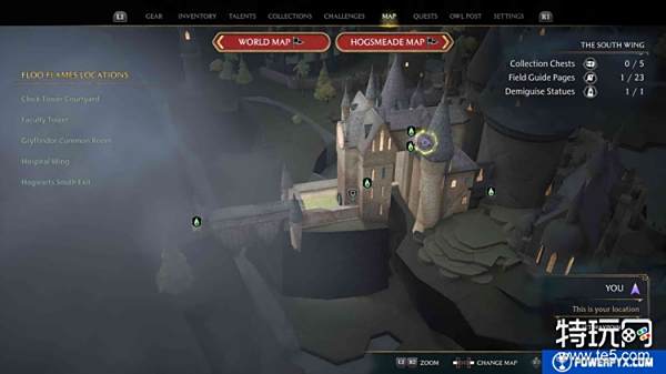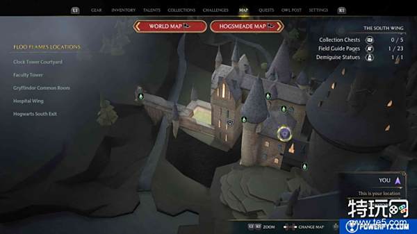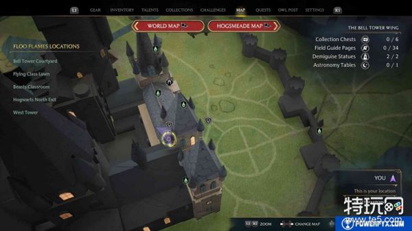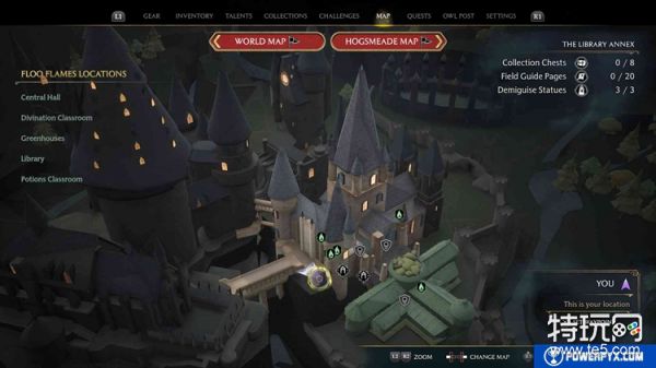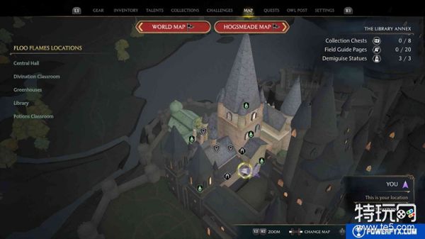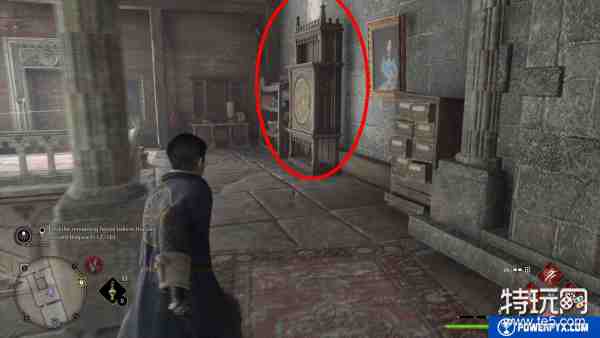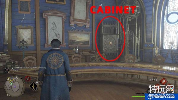 ”。从你生成的地方,稍微向左转,施放 Revelio 以标记飞行钥匙并在书架之间检查。找到它后,回到快速旅行点。当面对快速旅行点时,向右走找到机柜(可以再次施放Revelio)。