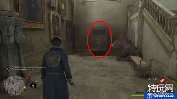 ”。从你生成的地方,穿过你面前的门。然后向左转以查看飞行键(像往常一样可以施放 Revelio 以将其标记为蓝色)。现在走下楼梯,一直走到尽头,找到楼梯尽头的柜子。