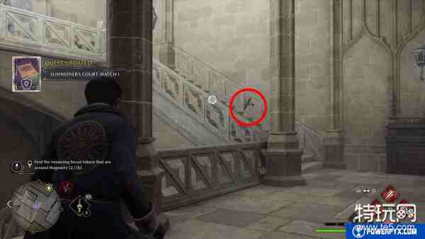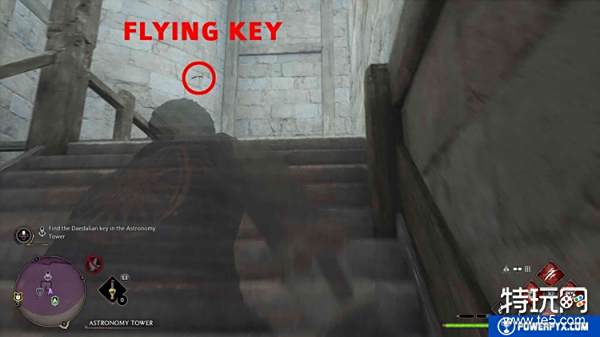 ”。从你生成的地方,直行并进入右侧的第一扇门。穿过门后,橱柜将在左侧(像往常一样可以用 Revelio 突出显示它)。要拿到钥匙,你必须上你面前的楼梯,它是在上两级楼梯后,会漂浮在第二组楼梯前,那里有一个门拼图。再次,可以施放雷维利奥轻松看到它。它会漂浮下来,然后你可以打开机柜。