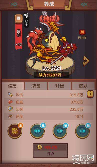 吕布:吕布是群雄神话品质的咸将,场上位置为战士,伤害极其可怕,生命值过低时会提升多个自身属性,可通过首充获得。