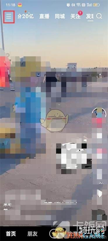 1、首先打开快手极速版,之后点击左上角的【三横】图标;