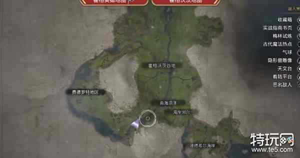 2、藏宝图如下,对应的位置在【费德罗特】地区古代魔法热点附近,可以通过艾恩代尔传送点前往;