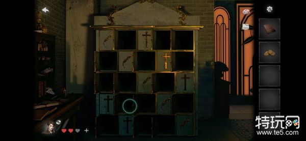 6、男视角:在房间内的柜门前,能够根据线索2,移开哭泣的天使获取金碗。
