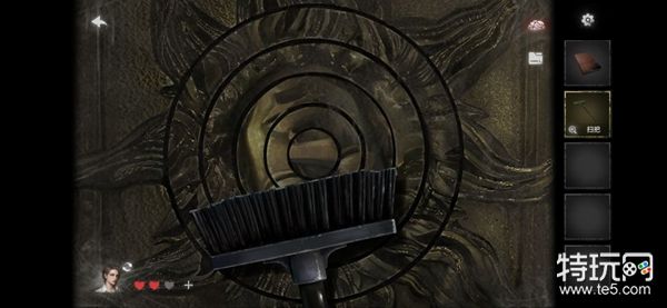 5、女视角:在走廊的另一边有个图案,需要用扫把打扫干净,通过小游戏打开房间的门然后进入。