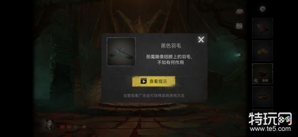进入地宫,依据线索4按照顺序点击恶魔的各个位置,获取黑色羽毛。