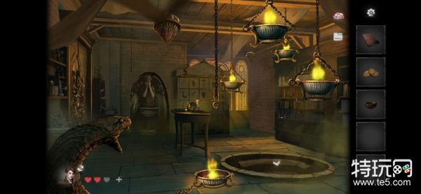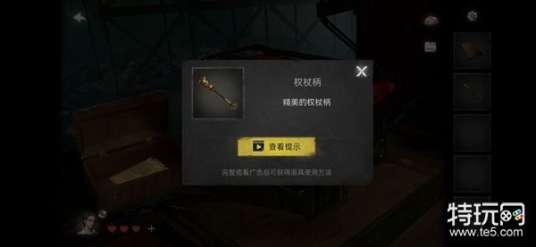 获得果树上的圣柜钥匙来打开柜门,可以拿到棒球,再回到走廊能够引开猫咪,打开金色箱子获得权杖柄和线索2。