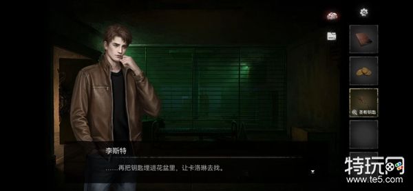 4、男视角:进入房间内,获取柜子右边的圣柜钥匙,将棒球放入柜子,把钥匙埋在走廊的泥土中。