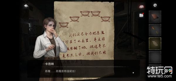 7、女视角:在房间内柜门后面会出现恶魔像,同时获取线索4。