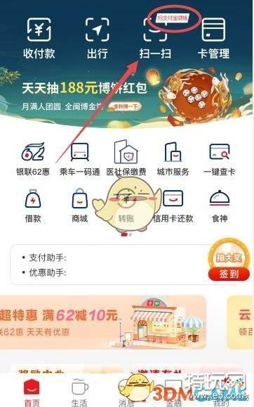 1、登录云闪付软件之后,直接点击软件首页顶部的“扫一扫”。扫一扫右上方有明确的提示“扫支付宝微信”,所以可以扫微信和支付宝的付款二维码。