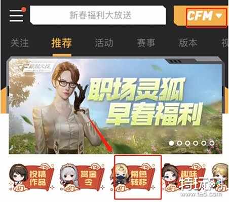 3、玩家进入cf掌上穿越火线,搜索cfm在下方找到角色转移并按照相关的转移任务即可开始转移;