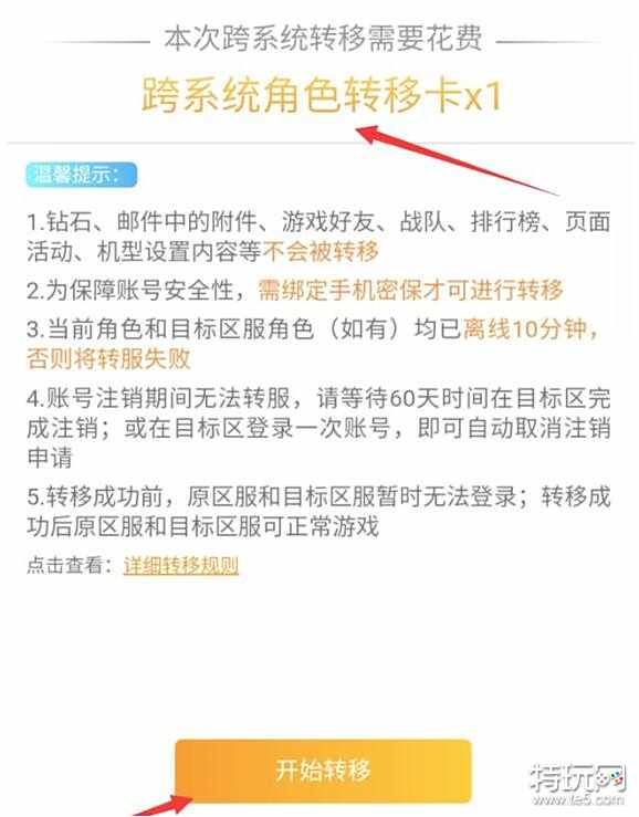 跨系统角色转移注意事项:使用跨系统转移卡转区只能安卓的QQ区转移到苹果【ios】的QQ,微信区也只能是微信转移到微信区。
