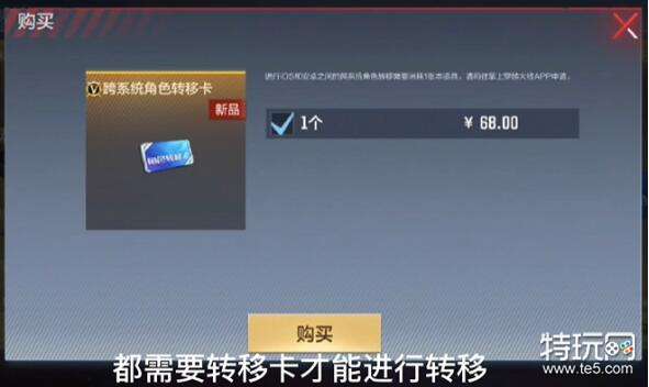 2、然后点击跨系统角色转移卡购买即可,使用后玩家即可从安卓转移到苹果系统。