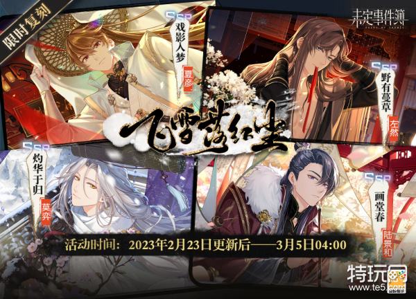 未定事件簿飞雪落红尘复刻活动将于2月23日正式开启,还没有拿到飞雪落红尘系列卡的小伙伴快快准备起来吧,下面小编就给大家带来了未定事件簿飞雪落红尘卡面一览,感兴趣的小伙伴快来看看吧。