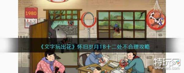 文字玩出花小游戏是一款文字题材闯关冒险手机游戏,关卡怀旧岁月18十二处不合理怎么过?这是八几年的场景,需要找出十二个不合理的地方。下面是特玩小编给大家带来的《文字玩出花》怀旧岁月18十二处不合理攻略,还没有通关的小伙伴可以来看看,希望能帮助大家!
