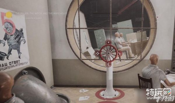 进入里面房间,转动转盘,直到对面空间出现办公室(如下图所示)。