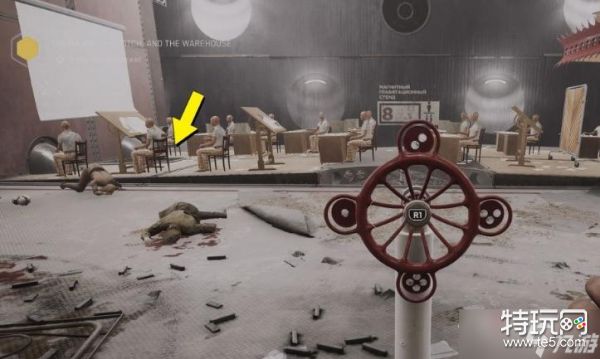 在《原子之心》中,进入后勤区域就能看到第一个旋转空间谜题,这个很简单,转动转盘3次,就可以从前边的小门离开了。