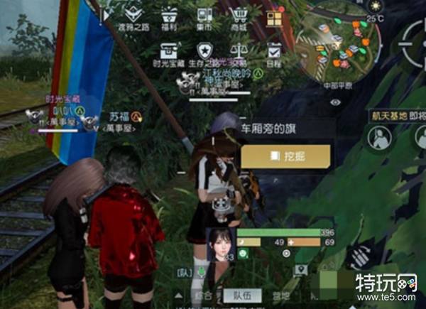 2、轨道旁,可以找到车厢边的彩色旗帜,挖掘即可获得宝藏。