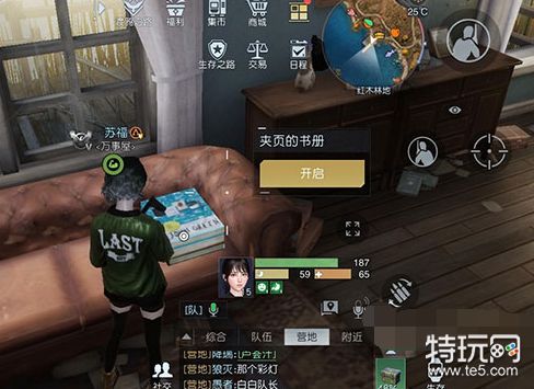 2、进入房间后可以看到沙发,在沙发上与夹页的书册互动就可以获得藏宝图。