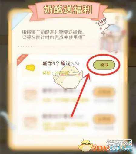 3、在限定时间内完成学习任务,然后找到右侧“领取”按钮,就行了领取奶酪奖励。