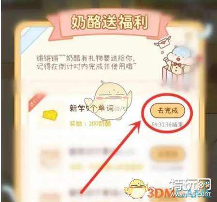 2、进入奶酪福利界面,找到学习任务右侧“却完成”按钮。