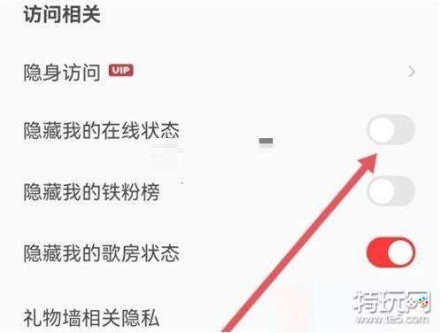3、最后开启隐藏我的在线状态功能,即可取消全民k歌在线状态。