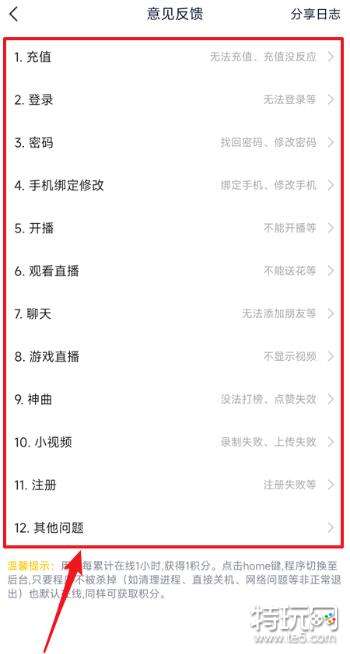 3、最后在【意见反馈】界面,即可选择要反馈的类型来进行反馈。