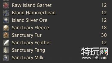 12石榴石12锤头鲨12银矿6乳汁12羽毛18尖牙18绒毛30兽毛