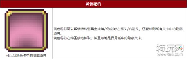 黄色秘符可以解锁特殊道具金戒指/银戒指/左箭头/右箭头,还能侦测所有关卡中的隐藏道具。
