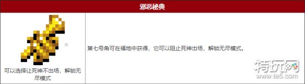 第七号角可在福地中获得,它可以阻止死神出场,解锁无尽模式。