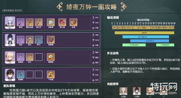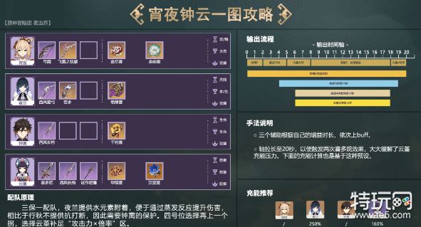 1、宵夜钟云是一个三保一队,手法简单输出安逸,充能方面要钟夜双西风和云堇十文字,冷启动能力也还行;