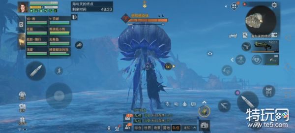 (4)在BOSS血量下降到0时,系统提示“击破水母,阻止怪物利用水母再生”,屏幕会刷出很多小水母,此时应该攻击小水母,打完全部小水母,中止BOSS的回血技能,如果没有打完,BOSS会回复一定血量。
