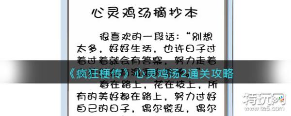 以上就是特玩小编整理带来的抖音小游戏《疯狂梗传》心灵鸡汤2通关攻略,还没有通关的朋友,不妨来看看上方的攻略!更多精彩内容,请点击关注特玩手游网!