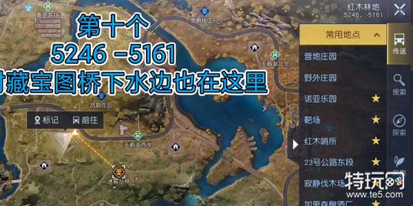 位置:位于坐标附近的水底下,可以根据地图所给的提示,位于凸起的陆地最尖部。